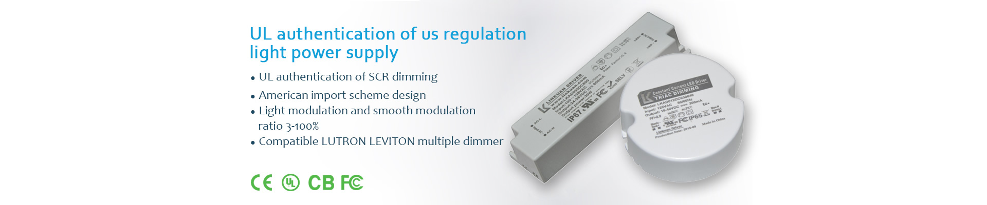 領冠智能調光電源主推美規UL認證恒壓可控硅調光電源規UL認證恒壓0-10V調光電源美規恒流線條燈調光電源美規UL恒流調光電源dali調光電源,0-10V調光電源等認證產品。